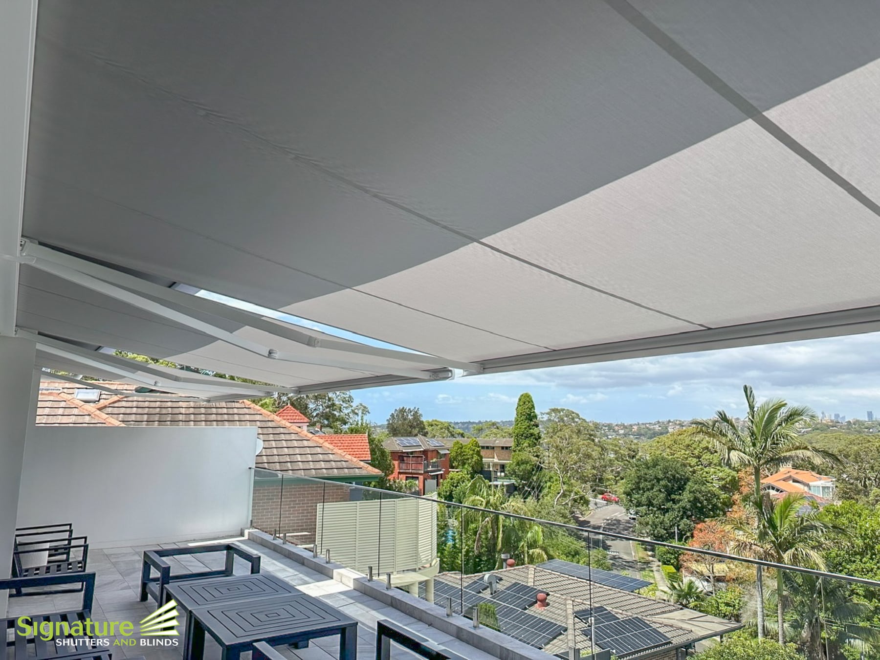 Add sun protection to balconies, terraces and garden areas with our fully customisable External Awnings. Our awnings compliment any outdoor area and feature modern European-styled cassette design.
