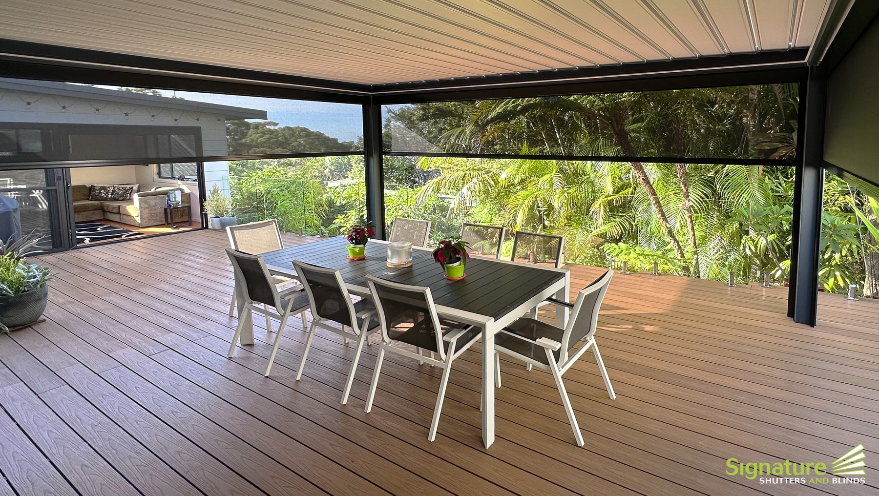External motorised blinds let you control the exact amount of sunlight, breeze, temperature + privacy required for your home and outdoor areas with the touch of a button.